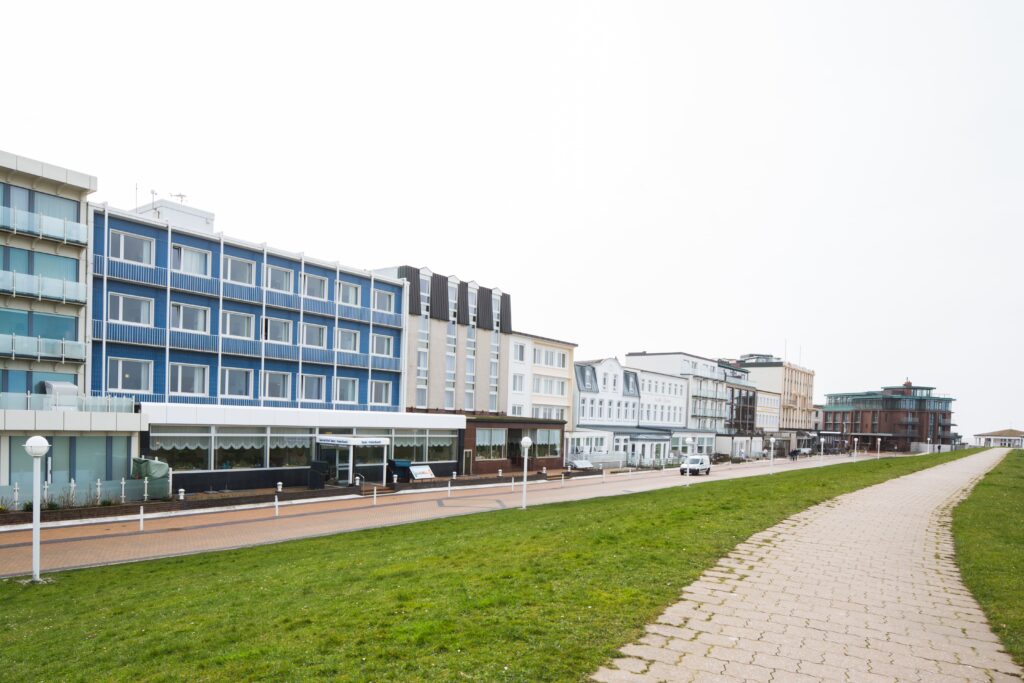 Das Haus Waterkant liegt, an der Kaiserstrasse direkt an der beliebten Strandpromenade Norderney ´s. Vor den Hotels befindet sich die Kaiserwiese mit den Strandkörben und die Nordsee, hinter den Hotels liegt das Stadtzentrum Norderney ´s.