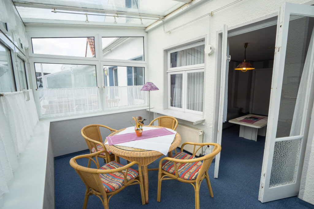 Ein besonderes Highlight ist der lichtdurchflutete Wintergarten, der als gemütliches Esszimmer dient. Hier können Sie – geschützt vor Wind und Wetter – Ihr Frühstück im warmen Licht des Tages beginnen oder abends bei Kerzenschein den Tag ausklingen lassen. Selbst an kühleren Tagen ist dieser Ort ein kleines Stück Sonne im Haus.